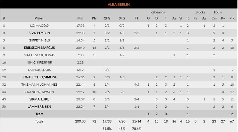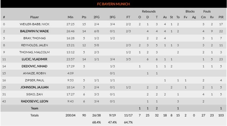 El derbi alemán solo tuvo historia en el primer cuarto, donde los de Aíto comenzaron muy bien y se pusieron seis arriba. En el segundo cuarto el Bayern humilló a los berlineses con un parcial de 9 a 31 y ahí se acabó el duelo. Hay poco que destacar en el ALBA en el día de hoy, más allá de la muñeca de Eriksson y del buen nivel de Jayson Granger. Por los de Trinchieri, el más destacado fue el regular Vladimir Lucic, pero hay que comenzar a hablar de la buena pareja que forman Nick Weiler-Babb y Wade Baldwin IV. El ex de Olympiacos ha comenzado a mostrar esta temporada lo que no hizo la pasada y, aunque aún sigue con un juego irregular, tiene momentos realmente brillantes.
