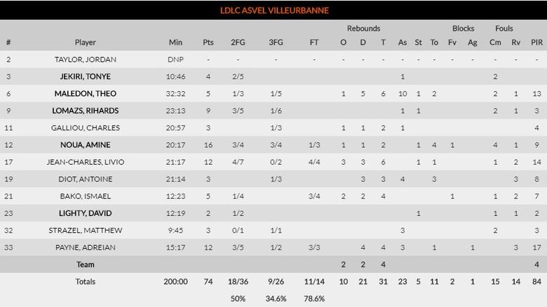 ANADOLU EFES 101-74 LDLC ASVEL VILLEURBANNE