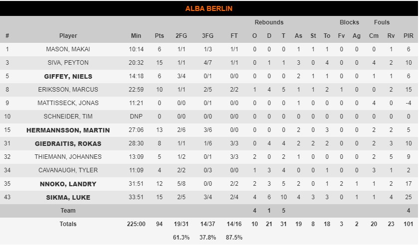 Quinta prórroga de la temporada para el Alba de Aíto y esta vez consiguió la victoria en un feudo muy complicado como es el de Estrella Roja. Los alemanes suman su segunda victoria consecutiva y se quedará un triunfo por encima de los colistas Zenit y Bayern. El partido fue igualado en todos los cuartos pero en la prórroga se deshizo esa igualda con un 15 a 6 para los berlineses. Kevin Punter y Stimac destacaron por los serbios mientras Luke Sikma lideraba otra vez un trabajo coral con hasta cinco jugadores en dobles dígitos en valoración. El final de los 40 minutos fue una sucesión de errores absurdos que pudo dar la victoria a cualquiera, con Giedraitis regalando el último tiro a Estrella Roja. En la prórroga fue clave Hermannsson con dos triples.