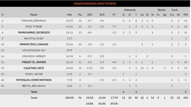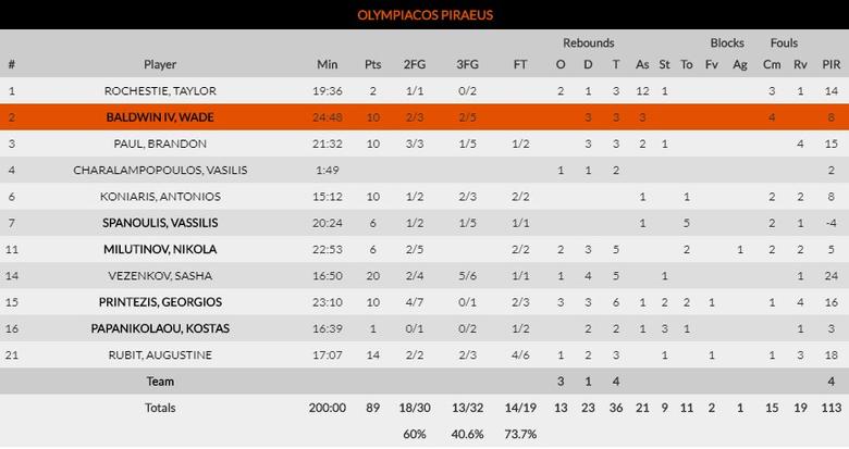 Tyler Rochestie hoy se dedicó a dirigir y asistir a sus compañeros con 12 pases de canasta, que le correspondieron seis jugadores anotando en dobles dígitos. Hoy Milutinov estuvo desaparecido pero Rubit lo sustituyó bien como pareja del regular Printezis. Pero quien más brilló fue Sasha Vezenkov, con 20 puntos y 24 de valoración en 16:50. El ex del Barça, que estuvo muy cerca de salir con destino a Iberostar Tenerife ante la falta de minutos, ha recuperado protagonismo con los cambios de entrenadores y comienza a demostrar que puede ser un jugador válido para la Euroliga.