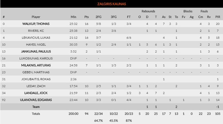 Los atenienses siguen realizando un gran baloncesto ofensivo desde la llegada de Rick Pitino. Hasta seis jugadores anotaron en dobles dígitos, con Tyrese Rice en uno de esos días que parece imparable. El base jugón se fue a 20 puntos, 6 asistencias y 26 de valoración, con Calathes sumando su cuarto doble doble consecutivo. El trío formado por DeShaun Thomas, Papagiannis y Papapetrou estuvieron muy solidos y Fredette aportó puntos sin ser su mejor partido. Zalgiris comenzó mandando en el primer cuarto y pasó a verse con el partido perdido a falta de cinco minutos, pero lucharon hasta el final para intentar tener opciones de ganar. Walkup, Rivers, Lekavicius, Leday, Landale y Ulanovas dieron la réplica anotadora a los griegos pero no fue suficiente. Panathinaikos asienta su sexta plaza al sacar dos triunfos a Valencia y Milán, mientras que un nuevo milagro de Jasikevicius parece cada vez más milagroso, valga la redundancia.