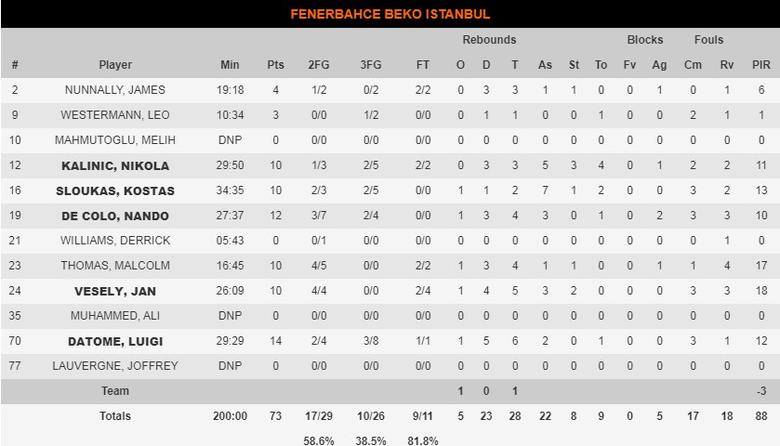 FENERBAHCE BEKO ISTAMBUL 73-64 ARMANI MILAN
