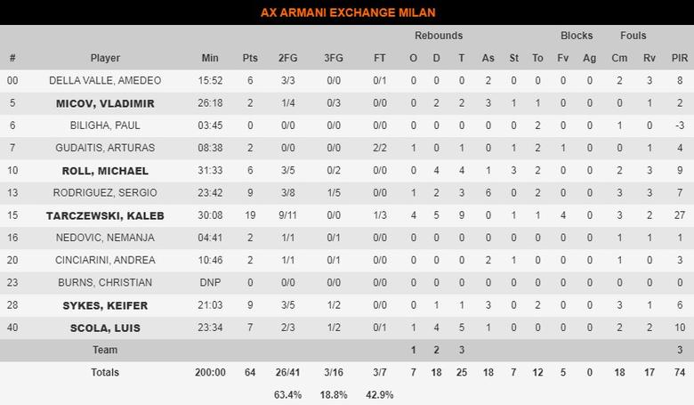 ¡Qué viene el Coco! Los de Obradovic acaban la jornada 21 a una victoria de puestos de playoff y ya todo el mundo los mira con temor. Y precisamente uno de los que teme por su plaza es el Armani Milán de Messina, que volvió a cumplir lo de que cuando Sergio Rodríguez y Scola juegan un partido discreto no gana. Fenerbahce sacó ventaja en el primer cuarto (24-15) y las manejó con la soltura de otras épocas aunque sin gran brillantez. Los turcos se basaron otra vez en un trabajo coral con hasta 6 jugadores en dobles dígitos de valoración y anotación. Buen trabajo bajo los aros de Malcom Thomas y Vesely, que va recuperando sensaciones, sumado a la regularidad de Kalinic y a la calidad de Datome, De Colo y Sloukas. Por parte milanista vimos un gran partido de Kaleb Tarczewski, con 19 puntos y 27 de valoración, pero fue el único que superó la decena en puntos y valoración.