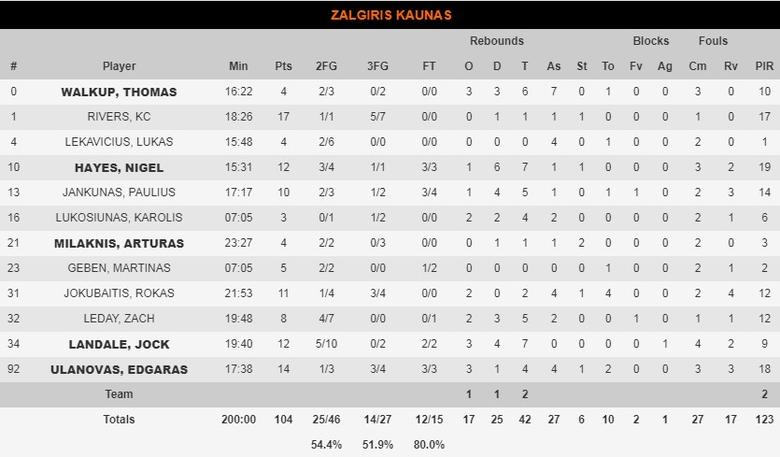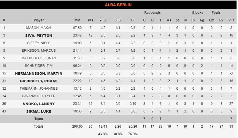 Los lituanos dieron un baño a los de Aíto, para confirmar la rebelión de los modestos con la victoria en esta jornada 21 de los tres últimos clasificados. Zalgiris comenzó de forma espectacular con un 23 a 9 en el primer período y fue aumentando su ventaja cuarto a cuarto. Hasta siete jugadores locales alcanzaron los dobles dígitos en valoración y seis en puntos. En un ALBA desbordado solo Nnoko, Giedraitis y Siva plantaron cara. Los alemanes no fueron capaces en ningún momento de parar los lituanos, que entre otros buenos números se fueron a un 14 de 27 en triples. También hay que destacar los buenos minutos del joven Rokas Jokubaitis.