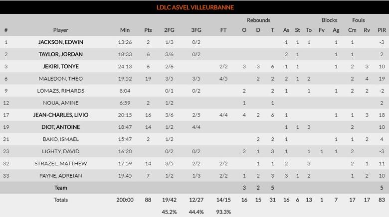 Los de Pitino siguen a un grandísimo nivel, sobre todo en ataque, y dejaron el partido practicamente sentenciado al descanso con el 52 a 35. Tercera victoria consecutiva, cuarta en los últimos cuatro partidos y con una media de más de 98 puntos anotados en ese período. Y otra vez más con muchos jugadores destacando. Calathes se fue a 17 asistencias para 27 de valoración, Fredette a 22 puntos y Papapetrou a 21, con 23 de valoración por cabeza, pero también Thomas, Papagiannis y Rice brillaron. Villerbaunne poco pudo hacer pero tiene motivos para la alegría en la muy brillante actuación de sus jovenes, con Maledon (2001) yéndose a 19 puntos y mismo número en valoración, y Matthew Strazel (2002) a 14 y 11.
