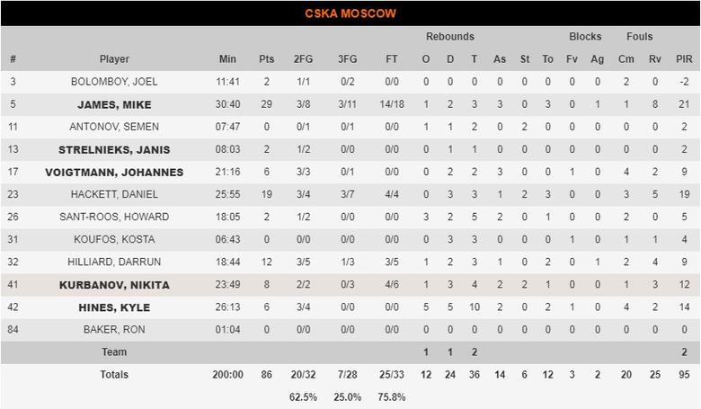 Tras sufrir dos derrotas consecutivas, los de Itoudis han vuelto a sumar una victoria. Pero no lo tuvieron fácil. La primera parte fue muy igualada con un Mike James muy desacertado con solo cinco puntos y valoración negativa. El trabajo oscuro de Hines y la anotación de Hackett mantenían a los rusos ante Lorenzo Brown y Stimac que hicieron daño en estos primeros veinte minutos. En el tercer cuarto James empezó a carburar y, con sus puntos y el dominio del rebote, CSKA se distanció ligeramente y ya mantuvo esas ventajas hasta el final. La estrella de los rusos anotó 24 puntos en la segunda parte.