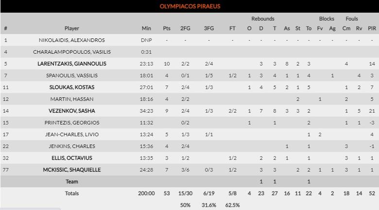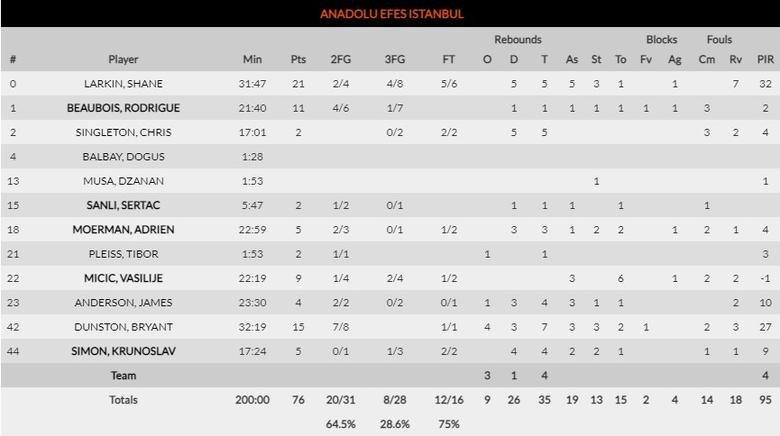 ANADOLU EFES ISTANBUL 76-53 OLYMPIACOS PIRAEUS