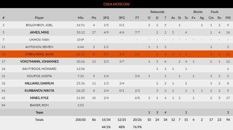 Por CSKA aportaron jugadores como Hines, Voitgmann, Strelnieks y Hilliard, pero una vez más el líder absoluto fue Mike James, con 27 puntos y 26 de valoración, además de cerrar prácticamente todos los cuartos con algunas de sus canastas habituales.
