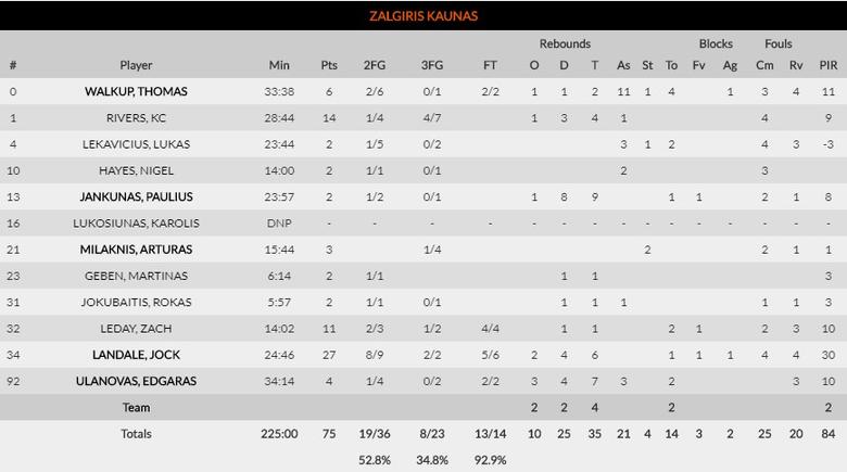 El francés ex de MoraBanc Andorra fue el mejor de los suyos con 19 puntos y 24 de valoración y contó con el trabajo en la zona de Colton Iverson y Gustavo Ayón. Por parte lituana Jock Landale realizó una espectacular actuación individual con 30 de valoración y 27 puntos en solo 24:46 minutos, pero hoy tocó el día malo de Lekavicius (-3) y Walkup asistió bien (11) pero solo anotó 6 puntos. El conjunto de Jasikevicius siempre depende mucho del rendimiento de sus bases y ahí podemos encontrar la principal explicación a la derrota.