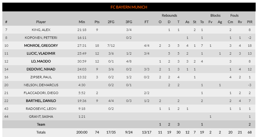 El Bayern, al igual que el Zenit, también fue local, en el Audi Dome, y también perdió un partido que en este caso, incluso empezó ganando. Ya que cuando terminaron los primeros 10 minutos, el 19 a 17 brillaba resplandeciente a favor de los bávaros, que habían entrado en el partido con ganas de cosechar su tercera victoria en el campeonato, capitaneados por un Monroe que había anotado 8 puntos en 8 minutos.
