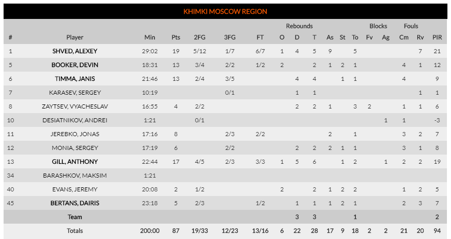 Pero el resto del encuentro sería otra historia. Khimki, o más bien Jannis Timma, anotó dos triples al comienzo que parecían suficiente distancia para coger carrerilla, pero Monroe y Alex King no dejaron que esto pasara. 31-27 estaba el marcador a falta de 4 minutos para el descanso, y tras la participación de Timma, Shved, Booker y Bertans, un parcial de 6 a 17 les había impulsado 7 puntos de distancia en el partido. Tras la reanudación, Timma y Monroe -13 y 14 puntos en la primera parte cada uno- no anotaron en todo el tercer cuarto, siendo Anthony Gill y Devin Booker los que hicieron que el último periodo fuera poco decisivo, entrando en él con el 55 a 70. El último cuarto, 19 a 17 para el Bayern, fue un reparto de golpes a lo “tuya-mía” que acabó propiciando la victoria de Khimki, asentado ya con 3 victorias y 1 derrota.