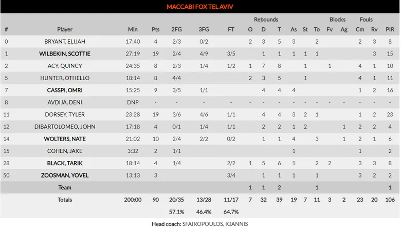 OLYMPIACOS PIRAEUS 65-90 MACCABI FOX TEL AVIV