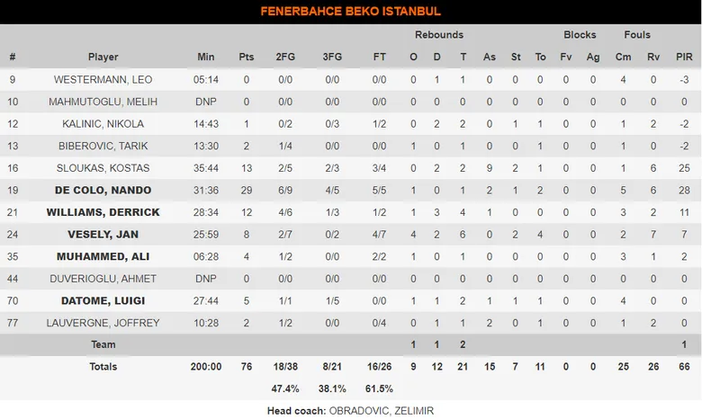 Ambientazo el que hubo en el Ulker Sports Hall desde el primer minuto para ver un auténtico partidazo con dos entrenadores de altísimo nivel. En un encuentro igualadísimo, los de Obradovic estuvieron siempre un poquito por encima gracias al enorme partido de De Colo (29 puntos) y Sloukas (13 puntos, 9 asistencias). Lo que no se esperaba nadie en Estambul eran los horrorosos últimos dos minutos de partido de los suyos. Siete puntos arriba estaban los locales a falta de 1:46. Hasta que Jasikevicius preparó una ratonera. Dos pérdidas consecutivas en la salida de balón otomana, la quinta falta de De Colo y 7 puntos de un Marius Grigonis completamente protagonista daban la vuelta al marcador y Zalgiris Kaunas se lleva la victoria de Estambul por 76-79. Con ello los de Obradovic se quedan 1-5 tras seis partidos. Preocupante.