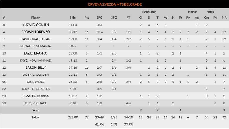 Los serbios querían hacerse fuertes en casa ante un equipo que, a pesar de ser una de las sorpresas con cuatro victorias, aún no había ganado fuera. El partido fue muy igualado, llevando ligeramente Estrella Roja la iniciativa, pero los franceses consiguieron empatar en el último cuarto y ganar en la prórroga gracias a Tonye Jekire, que anotó los últimos cuatro puntos. El pívot nigeriano volvió a dominar la pintura auméntando aún más sus grandes medias de doble doble con 18 puntos y 19 rebotes para 29 de valoración. Junto a Livio Jean-Charles formó una pareja dominante bajo los aros al lograr el francés 20 puntos y 28 de valoración. También pudimos disfrutar de los primeros minutos interesantes de la joven promesa Theo Maledon, que logró 5 puntos y 4 asistencias. Por parte local los más destacados fueron Dejan Davidovac, Lorenzo Brown y el ex de UCAM Murcia Billy Baron.