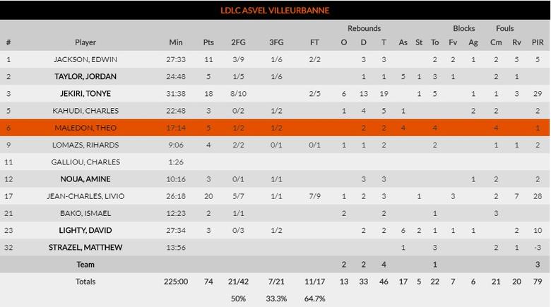 CRVENA ZVEZDA MTS BELGRADE 72-74 LDLC ASVEL VILLEURBANNE