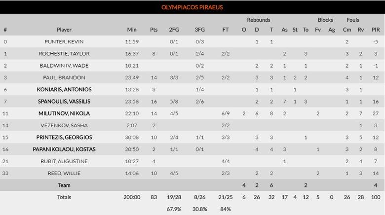 OLYMPIACOS PIRAEUS 83-74 ZALGIRIS KAUNAS