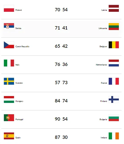 Por otro lado, el resto de favoritas no falló con victorias contundentes de Polonia, Italia, República Checa, Serbia y Francia. Así, los resultados y los cruces de cuartos de final han quedado así: