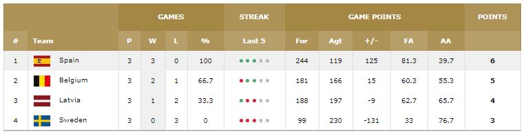 España logró su tercera victoria en la tercera jornada de torneo también de manera contundente ya que las de Bernat Canut fueron capaces de imponerse a Letonia por 90-52. El partido no tuvo demasiada historia al ir aumentando progresivamente las diferencias desde el 11-0 de salida, a los 12 puntos con los que se llegaba al final del primer cuarto (21-9), a los 22 con los que se llegaba al descanso y a los 42 con los que finalizaba el tercer período. Tan solo en el último cuarto eran las bálticas capaces de imponerse parcialmente a las españolas pero el choque ya estaba sentenciado y que finalizaba con 90-52 en el marcador.