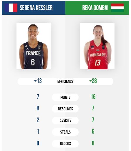 En la segunda semifinal fue Hungria la selección clasificada para la final mostrando de nuevo la gran calidad que han demostrado a lo largo de todo el torneo e imponiéndose en el primer, tercer y cuarto parciales, lograban semejante hito con un marcador de 56-67. En este encuentro, las mejores jugadores húngaras fueron Reka Dombai (16 puntos, 7 rebotes, 7 asistencias y 6 robos) y Aliz Varga (10 puntos y 10 rebotes).