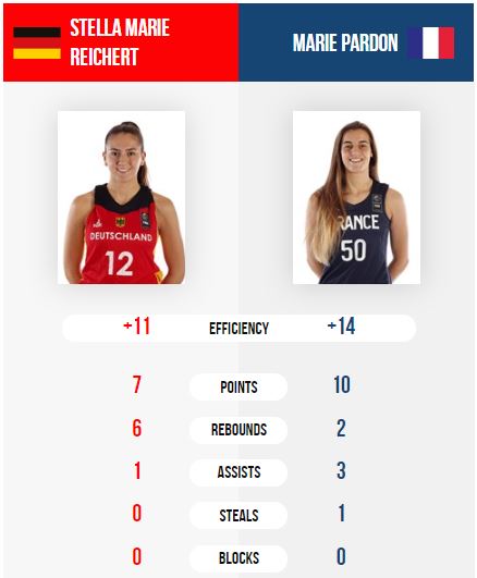El primer partido de estos cuartos de final se disputaba entre Alemania y Francia, encuentro que fue un partido sin historia ya que el conjunto teutón se vio superado desde el pitido inicial por Les Bleus, siendo las germanas incapaces de superar la defensa de las de Arnaud Guppillotte que con unas acertadas Marie Pardon, Emilie Raynaud y Yohana Ewodo, eran capaces de poner 23 puntos de distancia en los tres primeros cuartos y dejando el partido visto para sentencia en un choque que acabaría con un marcador de 49-72.