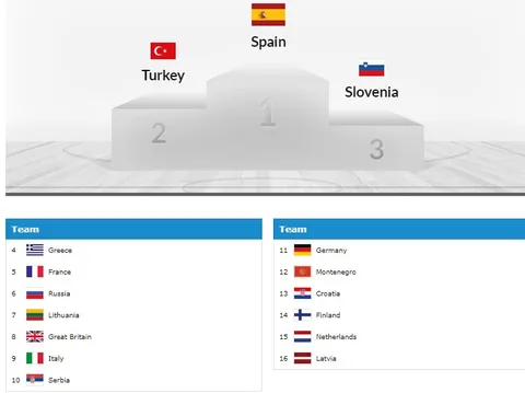 España se lleva el oro en un partido que Turquía también mereció ganar. Eslovenia fue bronce al arrollar a Grecia. Santi Aldama fue nombrado MVP y le acompañaron en el quinteto Usman Garuba, su rival en la final Alperen Sengun, el ganador del bronce y de la cantera del Real Madrid Ziga Samar, y el griego Nikolaos Rogkavopoulos.