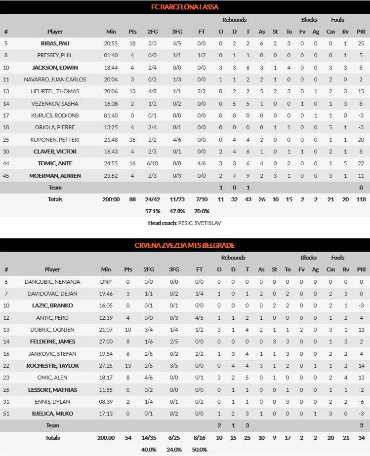 Tras el descanso, Estrella Roja consiguió frenar la sangría ofensiva causada por el conjunto blaugrana gracias a la presencia de referencias físicas como Davidovac y Antic. Rochestie y el acierto desde el tiro libre permitía firmar un parcial 21-8 que reducía la desventaja hasta el 62-49.