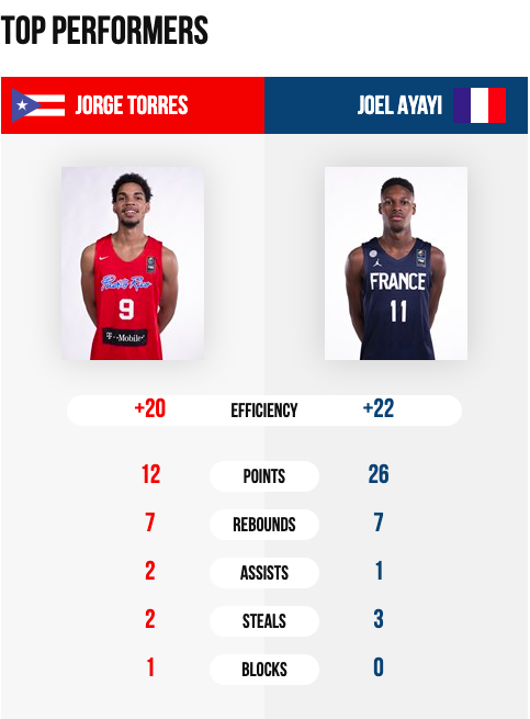 Francia se impusó en el segundo partido del grupo frente a Puerto Rico, con un espectacular Joel Ayayi. El jugador de la universidad de Gonzaga fue de los máximos anotadores de la jornada con 26 puntos y capturó hasta 7 rebotes en apenas 25 minutos en cancha. Parece que Serbia y Francia se jugarán en la última jornada la primera plaza del grupo C.