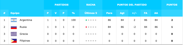 ARGENTINA 86-84 RUSIA GRECIA 85-69 FILIPINAS |