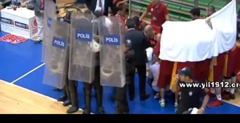 Ya en Karsiyaka, Galatasaray fue recibido por un ambiente muy hostil. Estaba muy fresca en la memoria de los seguidores locales los graves indicentes acaecidos en el Abdi Ipekçi en el choque que ambos equipos disputaron el mes de abril correspondiente a liga regular y, desgraciadamente, quisieron pagar al equipo contrario con la misma manera. Lamentable. Primero apedrearon el autobús y durante el encuentro se vivió una presión terrible por parte del público local que nos llevó a vivir imágenes inaúditas como la de miembros de la policía antidisturbios protegiendo con sus escudos a la plantilla de Galatasaray y a su cuerpo técnico durante los tiempos muertos.