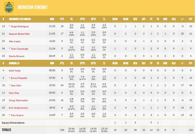 Sasu Salin le ganó el concurso a RJ Hunter y Spencer Butterfield. Con las bajas de Marcelinho Huertas y Aaron Doornekamp, Vidorreta optó por jugar muchos minutos con dos escoltas al juntar a Spencer Butterfield. La táctica no pudo ser más acertada al tener enfrente un rival con poca defensa y que permitía tiros liberados contínuamente. Hunter y Butterfiel se lucieron especialmente en la primera parte y apuntaban a tener opciones de llevarse el MVP o concurso de tiro, pero Salin quiso dejar claro porque es uno de los tiros más reputados del continente y regaló una exhibición de 34 puntos con 8 de 11 en triples, que es la mayor anotación de un jugador de Iberostar Tenerife en competición europea.