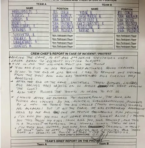 Tal y como relata la web Eurohoops, y que es confirmada en todos sus detalles por el acta arbitral dada a conocer por este mismo portal, el dueño de Panathinaikos bajó tras el partido junto con un par de miembros de seguridad hasta el vestuario de los árbitros. Allí, lanzó un objeto decorativo al colegiado turco Recep Ankarali y amenazarlo gravemente con expresiones como "Te mataré. Mataré a tu familia" o "Me follaré a tu madre, a tu mujer y a tus hijos delante tuyo".