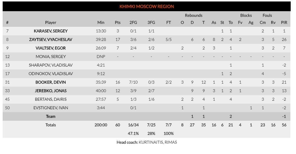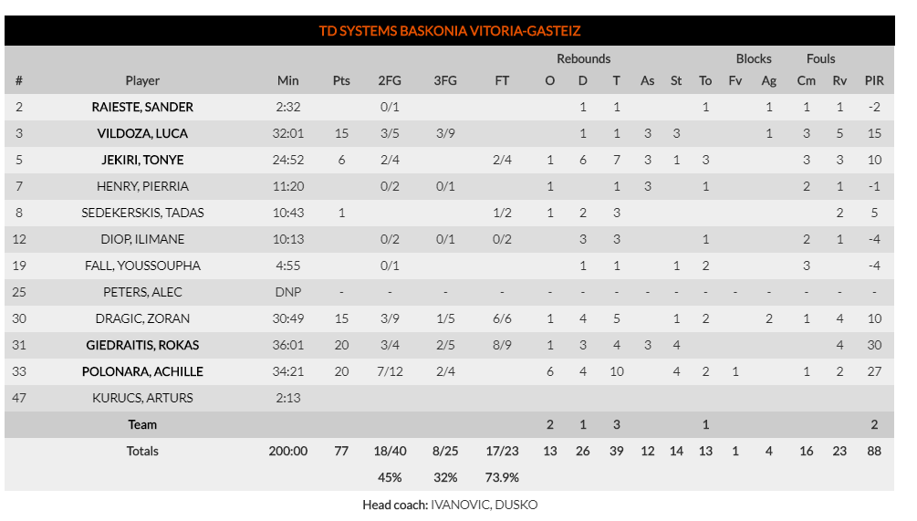 Estadísticas Baskonia-Khimki: