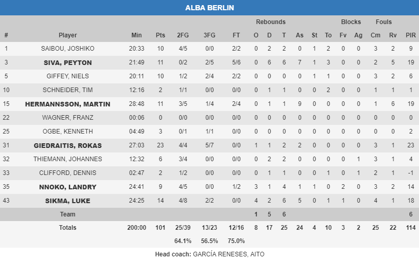 1.Un Alba Berlín de triple. No es que el equipo alemán basara su victoria en el tiro exterior, pero los brillantes números que los alemanes consiguieron desde el tiro de tres fue una de las claves del partido. De un 56 % de los de Aíto pasamos al 29 % de Unicaja, quien tuvo al finlandés Sasu Salin como máximo protagonista desde el triple y que acabó con un 4 de 7. Pero poco pudo hacer ante los números de Rokas Giedraitis (5 de 7) o los 2 de 2 de Sikma.