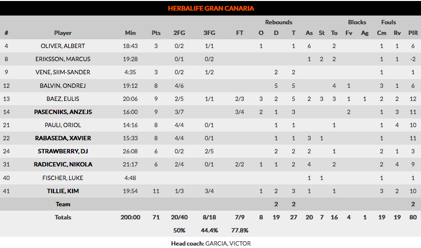 En negativo: Las pérdidas de balón (16), la diferencia en la pelea por el rebote (25 a 36) o la defensa, fueron aspectos en los que Baskonia fue muy superior al Herbalife. El Granca saca muy pocas cosas positivas de la intervención de sus pívots y cada vez tira menos de tres. Eriksson solo pudo tirar tres tiros a canasta en veinte minutos de juego y no anotó ni un punto. Compitió en igualdad solo un cuarto y medio y bajaron los brazos demasiado pronto. Baskonia demostró tener más hambre de victoria, más poderío físico y más calidad.