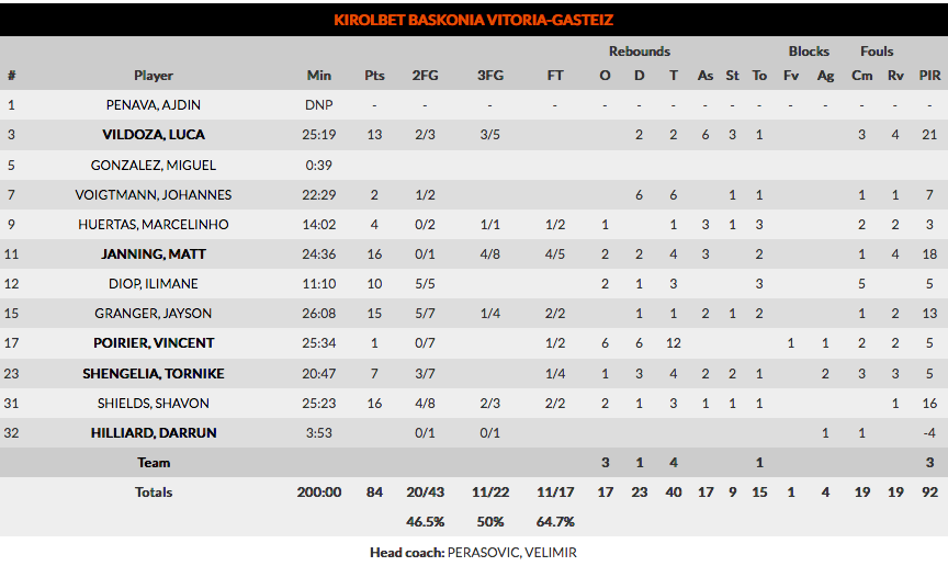 Rotación exterior: Entre Vildoza (13 puntos, 6 asistencias y 5 de 8 en tiros de campo), Granger (15 puntos y 6 de 11 en tiros), Shields (16 puntos y 6 de 11 en tiros) y Janning (16 puntos y 4 de 8 en triples) destrozaron al Herbalife. Si a esto se le une la diferencia en la intensidad defensiva de ambos equipos, Ni siquiera hizo falta que aparecieran los interiores, ya que solo Diop tuvo una actuación destacada en ataque y marcó diferencias cerca de canasta.