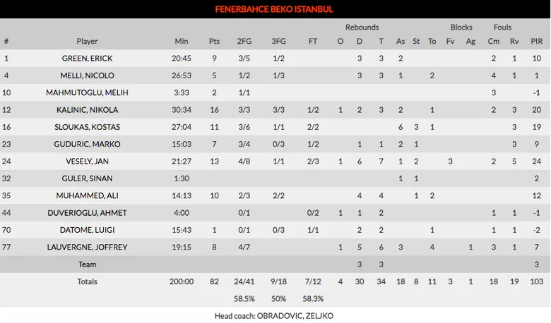 Obradovic se encomendó a Vesely, dominando en la zona, a sus bases (Sloukas primero y Ali después) y a los triples de Kalinic para anular a un Granca incapaz de frenar el despliegue ofensivo de un Fenerbahce, que demostraba su nivel. Los amarillos se deshicieron en el último parcial y dejaron el camino expedito al actual Campeón de Europa.