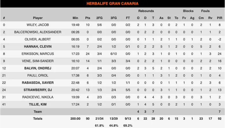 Eriksson & Strawberry: El sueco (24 puntos en 17 minutos) está en el mejor momento de la temporada, apareciendo cuando más lo necesita su equipo. Con cuatro triples, en menos de cuatro minutos, dinamitó el choque. El cambio que ha dado Dj Strawberry en el último mes está siendo espectacular. El norteamericano empezó bien la campaña, aunque sin regularidad en el tiro exterior y luego pasó por un largo y complicado bache, en el que su juego no se acercaba al nivel de temporadas anteriores. En los últimos partidos de Víctor García, pero sobre todo, desde la llegada ha dado un paso adelante muy importante para su equipo.
