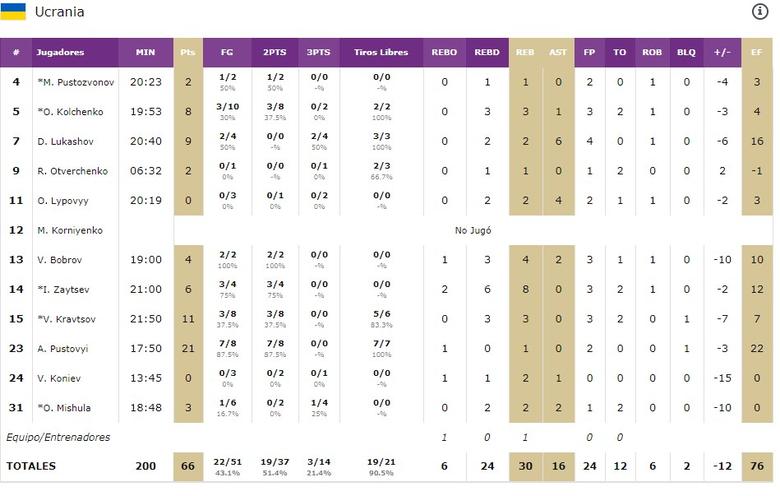 - A falta de anotadores exteriores, balones dentro. Uno de los problemas del primer partido de Ucrania fue la falta de anotación exterior cuando la defensa rival aumenta. Contra Italia, con muy buen criterio dada la falta de pívots intimidadores de los transalpinos, optaron por surtir de balones a sus cincos grandes. Entre Kravtsov y Artem Pustovyi anotaron casi la mitad de los puntos de su equipo: 32 de 66. Hay que destacar especialmente el trabajo del pívot de Obradoiro con 22 puntos y una media de 17 en los dos partidos. Espectacular el trabajo que ha hecho el equipo técnico del club santiagués con este jugador. Cuando llegó a Santiago le faltaba todo por pulir y después de pasar por esa escuela de pívots que es O Sar, ahora está siendo el mejor jugador de su selección.