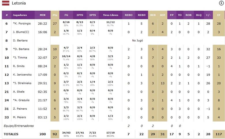 - Timma y Porzingis, pareja demoledora. Sin duda que el triunfo letón tuvo en esta pareja a la clave de su triunfo. Tras la derrota ante Serbia, ahora sí que Porzingis ejerció su dominio, bien secundado por el baskonista Jannis Timma. Porzingis estuvo eficaz cerca del aro (8/13) y casi infalible desde el tiro libre (11/12). Timma, complementaba a la perfección la del jugador de los Knicks y aportó un enorme porcentaje de tiro en sus 27 puntos. Además, ambos sumarón 13 rebotes y fueron determinantes en el primer triunfo de Letonia en este Eurobasket.