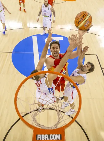 - Poderío interior: El juego interior de la selección española se impuso en todo momento. En ataque se reflejó en el porcentaje en tiro (20/36 – 55%), en rebotes (38, 8 ofensivos – 16 puntos en segundas oportunidades) y en la intimidación ejercida sobre los jugadores serbios que frecuentaban la zona (3 tapones de España y 7/22 – 42% en T2 por parte de los pivots serbios).