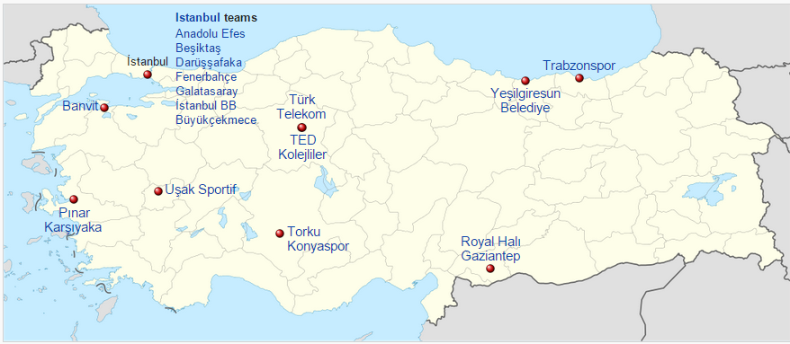 En cuanto a los reprensentantes de la liga turca en competiciones europeas, habrá nada menos que 4 conjuntos turcos en Euroliga: Fenerbahce y Anadolu Efes, ambos con Licencia A; Pinar Karsiyaka, por ser el vigente campeón de liga; y, finalmente, el Darussafaka Dogus, que recibió una wild card por parte de la organización. Banvit, Besiktas, Galatasaray y Trabzonspor serán los representantes otomanos en Eurocup. Además, Royal Hall Gaziantep y Turk Telekom han decidido participar en el nuevo torneo internacional amparado por la FIBA.