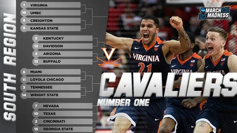 Virginia, el mejor equipo de la temporada en la NCAA, no va a tener un camino de rosas para llegar a la Final Four. Los de Tony Bennett han quedado encuadrados con equipos del calibre de Kentucky o Arizona. De hecho, podemos disfrutar de un encuentro entre la camada freshman de John Calipari ante el todopoderoso Deandre Ayton en la segunda ronda del March Madness. Bendita locura. Por el otro lado Tennessee llega fuerte tras ser subcampeón de la SEC y se las tendra que ver tal vez con Miami en segunda ronda. Manny Suarez va a ser el segundo participante español en esta edición del Gran baile ya que Creighton se va a enfrentar a Kansas State en primera ronda.