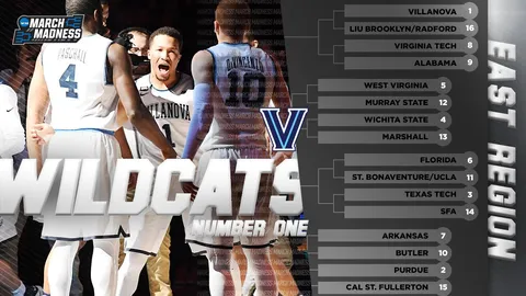 Cuadro más asequible de lo esperado para Villanova. Se las tendrá que ver por el camino tal vez ante la Alabama de Collin Sexton o la West Virginia de Jevon Carter, pero podría ser peor. En esta parte del cuadro podemos encontrar duelos interesantes como el enfrentamiento entre Alabama y Virginia Tech o Arkansas y Butler. Cuidado con la siempre peligrosa Wichita State liderado por Landry Shamet. Interesante duelo el que podemos vivir en primera ronda si gana UCLA y se enfrenta a una crecida Florida. Purdue tampoco va a tener una camino fácil porque se podría enfrentar, por ejemplo, a la Texas Tech de Keenan Evans.
