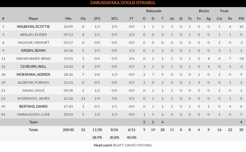 En general, a partir del segundo cuarto el partido fue un «toma y daca» constante (con «tomas» baskonistas más grandes que «dacas» turcos), en el que las diferencias llegaron a rozar los 30 puntos y Blatt se afanaba en buscar soluciones con éxito. A su plantilla no le salía absolutamente nada, y su defensa interior era un coladero. Como anécdota que muestra el nivel que tuvo el Baskonia atrás, los turcos iban a casi un punto por minuto durante los primeros 30: 55-33.