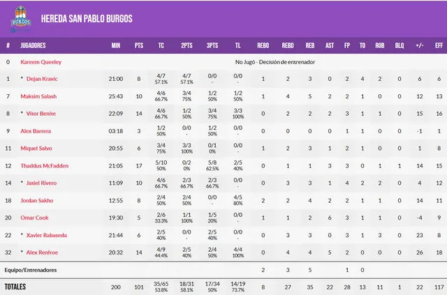 Cómo le ha echado de menos Hereda San Pablo Burgos durante su lesión. Renfroe volvió a ser el mejor jugador sobre la cancha, manejando los tiempos y permitiéndose cambiar de ritmo con la explosividad de quien se sabe en plena forma. 14 puntos, 4 rebotes y 4 asistencias para 17 de valoración… y un +27con él en cancha. Su presencia alivia a Omar Cook en las tareas de dirección, permite jugar a Peñarroya con dos bases en cancha y, sobre todo, habilita tiros para Thad McFadden, más cómodo como escolta y Vítor Benite. Su vuelta a las canchas es todo un fichaje para los azulones.