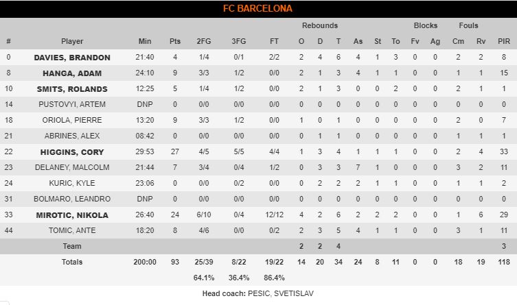 Durante la semana hubo mucho ruído en torno al Barça y la relación que tenían los jugadores con el entrenador Svetislav Pesic. Ante esto, Mirotic salió a desmentirlo y afirmar que todos reman en la misma dirección. Sin embargo, la mayor respuesta de ambos jugadores no estuvo en los micrófonos, sino en la pista. La exhibición que realizaron hoy no es más que una muestra de todo el potencial que tienen. Mirotic (24) fue fundamental en la primera mitad mientras que Higgins, que anotó 27 puntos (máximo de carrear en Euroliga), fue el encargado de poner el broche final con una segunda parte surrealista.