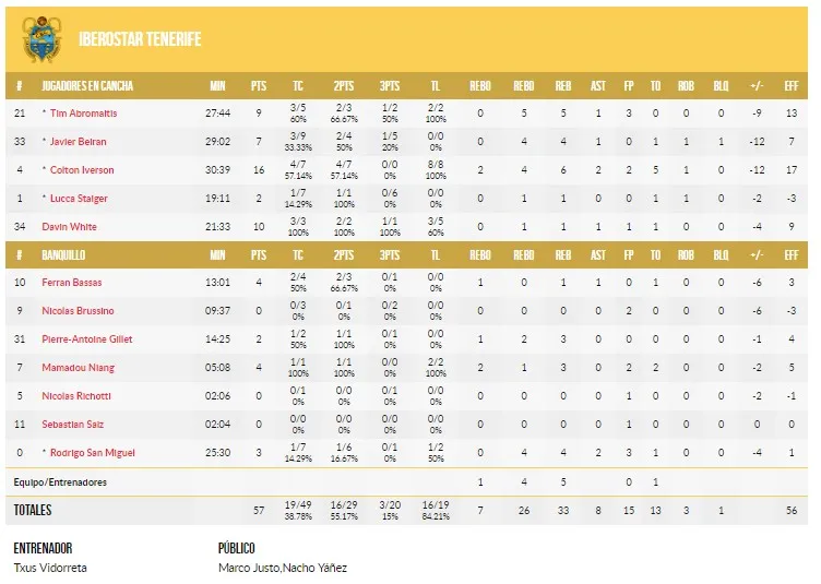 No conseguían desarrollar los muchachos de Vidorreta su habitual tino en el tiro exterior, especialmente personalizado en el especialista Staiger y su 0/6 desde más allá del arco. Se le escapaba el partido y quizás la eliminatoria a Iberostar Tenerife, lastrado también por el poco cuidado que hacían del balón. Sin saber o sin poder jugar con un cruce a ochenta, que no a cuarenta minutos, se iban los griegos hasta los 15 de ventaja (64-49 min. 36) basado todo ahora en una defensa agresiva sobre las líneas. Sólo el tercer acierto de los 19 tiros de tres gastados por los visitantes daba un poquito de luz en aquel túnel en el que se había metido Iberostar: 66-57 ya en el último minuto. Pero ni por esas. Una mala resolución, reflejo de lo que había sido todo el partido dejaba el primer acto de estos octavos en 69-57. Si no lo remedia La Hamburguesa lagunera, esto tiene pinta de auténtico y genuino sorpasso.