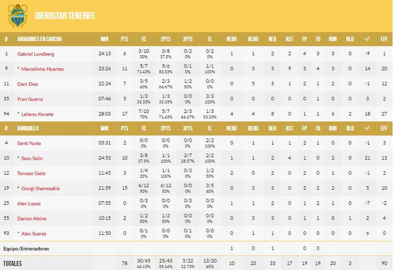 Konate fue el líder en ese apartado. A veces el karma es justo con un equipo ante las adversidades. El fichaje del alero francés fue motivado por la espantada de Kyle Singler y, aunque Konate no tiene la enorme calidad del americano, puede acabar siendo una pieza mucho más adecuada para Iberostar Tenerife. El francés estuvo inmenso en defensa e intendencia con 6 recuperaciones y 8 rebotes. Si además tiene acierto en ataque como hoy (17 puntos) puede hacer partidos espectaculares como este en el que acabó con 27 de valoración.