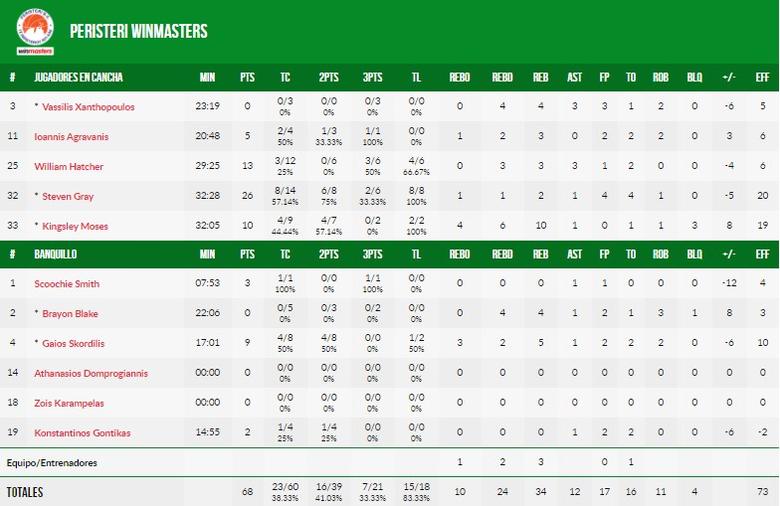 Steven Gray se convirtió en una pesadilla en el último cuarto. El mejor jugador de Peristeri estuvo bien defendido en los tres primeros cuartos aunque mostró su calidad con 13 puntos. Pero en el período decisivo fue un auténtico dolor de cabeza para la defensa canaria con otros 13 puntos solo en esos diez minutos, anotando 9 de los últimos 11 de los griegos.