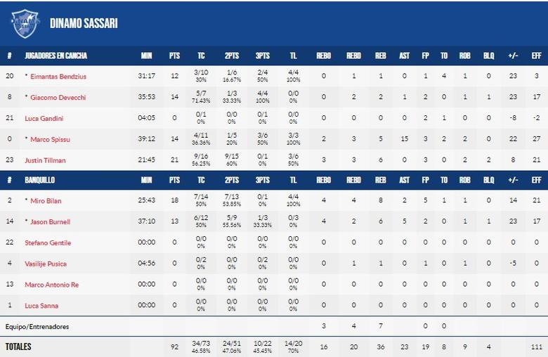 Duelo de invictos. No es decir mucho ya que solo llevamos una jornada de la BCL pero se enfrentaban dos equipos que comenzaron bien la competición y se esperaba un duelo igualado. Iberostar Tenerife viajaba a Italia para enfrentarse al Dinamo Sassari de Gianmarco Pozzeco, que venía de ganar a Galatasaray con una espectacular actuacion del joven base italiano Marco Spissu, que se fue hasta 31 de valoración, y que cuenta con un buen juego interior con jugadores como Miros Bilan y Justin Tillman. Los aficionados ACB también se fijarían especialmente en Eimantas Bendzius, ex de Monbus Obradoiro.